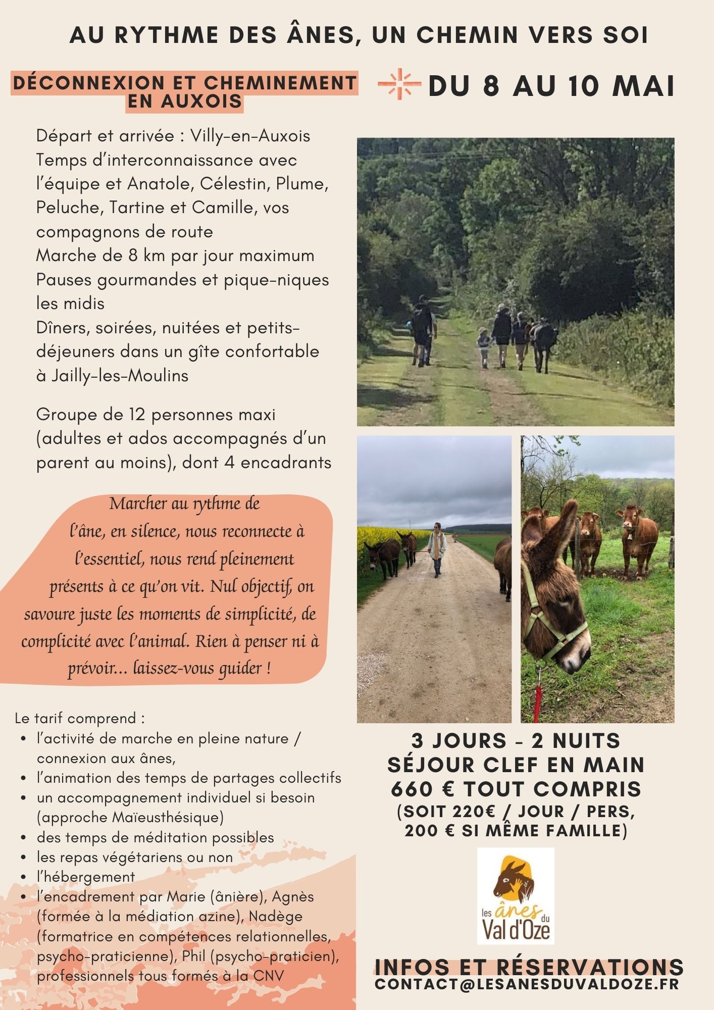 🥾 Ralentir pour se reconnecter, en plus des Balades zen et méditatives mensuelles : une randonnée de 3 jours avec des ânes, pour retrouver le rythme de la nature et la simplicité du moment présent (avec l’association Les ânes du val d’Oze)